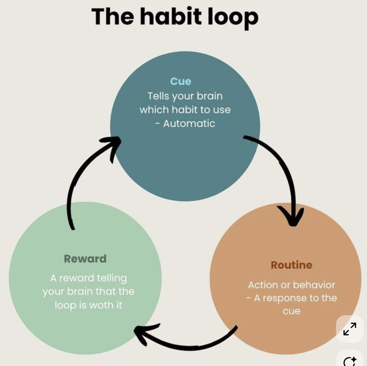 I have explained the theory behind the habit loop further bellow but ultimately we must incorporate this cue and action within our routine.